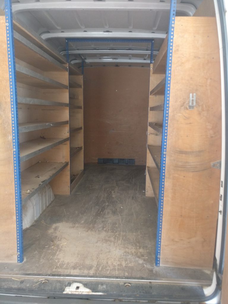 Unser Sprinter verrichtete vorher seinen Dienst als Transportfahrzeug für einen kleinen Tischlerbetrieb. Das Erste, was der Vorbesitzer tat war, die nackten Bleche im Laderaum mit Holz zu verkleiden und Regale einzubauen. Damit war wurde das Innere über die Jahre hin hervorragend vor Schäden geschützt. Zudem beschränkten sich die Fahrten auf den näheren Umkreis, was zum relativ geringen Kilometerstand führte.
